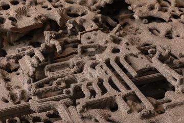 Instalace představuje fyzický model architektury budoucnosti, která není stavěna, ale „roste“ – inteligentní, ekologicky propojený a materiálově cirkulární systém reagující na podmínky prostředí a vycházející z logiky kořenových sítí.