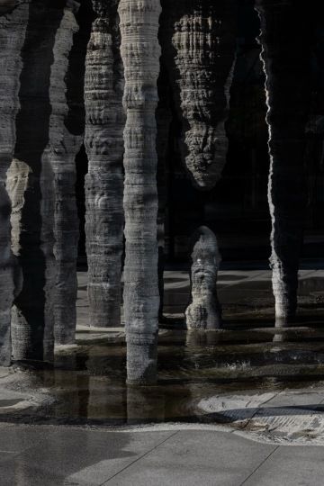 Ačkoli je sousoší statické, vytváří dojem neustálého pohybu. Objekt vyrůstá z vodní nádrže a voda jemně stéká z jeho vrcholu. Cílem bylo napodobit vzhled přírodního objektu z při pohledu z dálky. V detailu však socha odhaluje svou lidskou konstrukci. Všechny její aspekty jsou posíleny virtuální vrstvou, přístupnou prostřednictvím rozšířené reality.