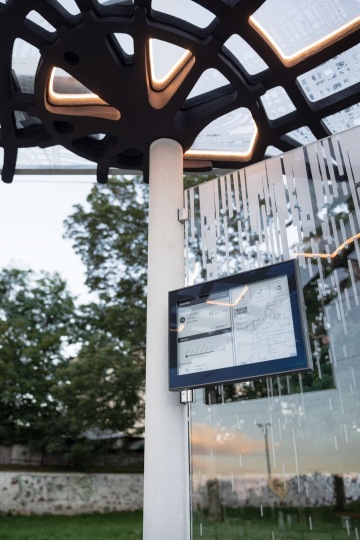 Parametrický design tramvajové zastávky využívá efektivitu přírodních řešení, topologickou optimalizací redukuje materiál až o 60 % při zachování estetických a statických požadavků. Výsledné tvarosloví žeber odráží skutečné chování konstrukce při zatížení a přímo tak ukazuje síly, které v ní probíhají. Perforovaná jemná struktura odolá stejnému zatížení jako plná betonová deska.